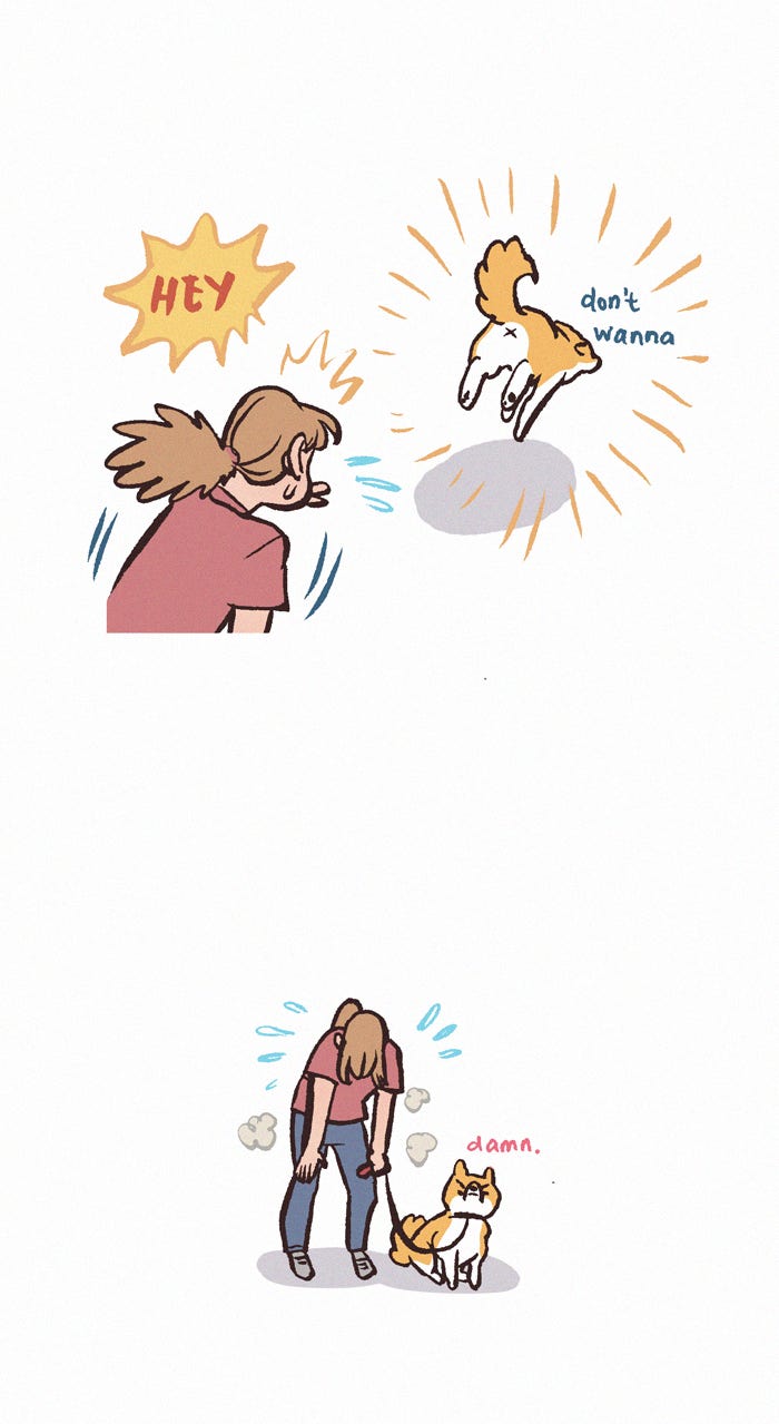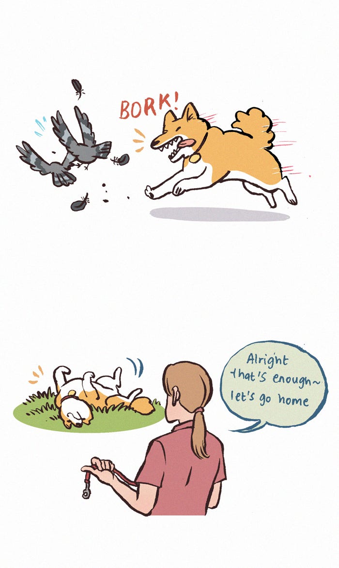 The Grown Dog Bullies Its Owner