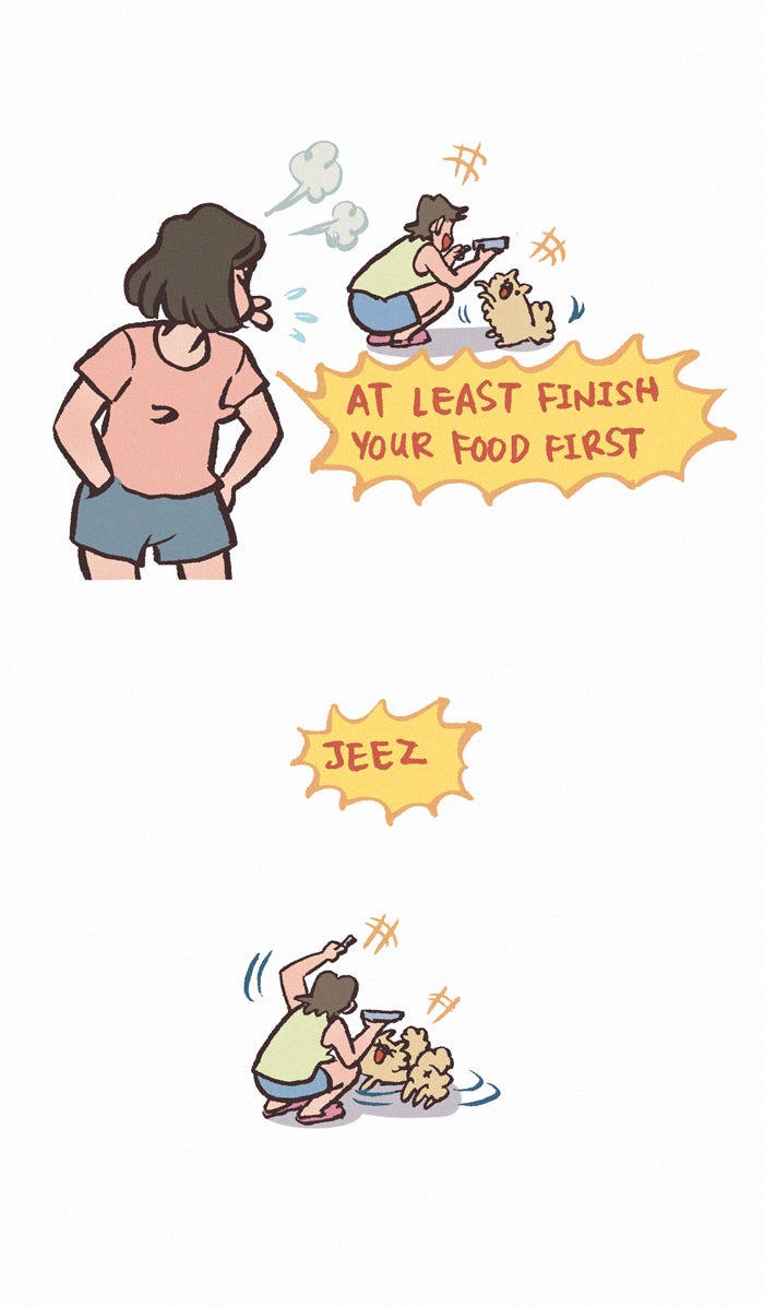 The Grown Dog Bullies Its Owner