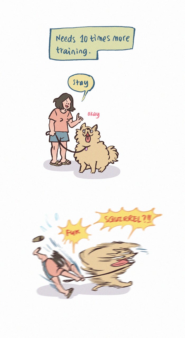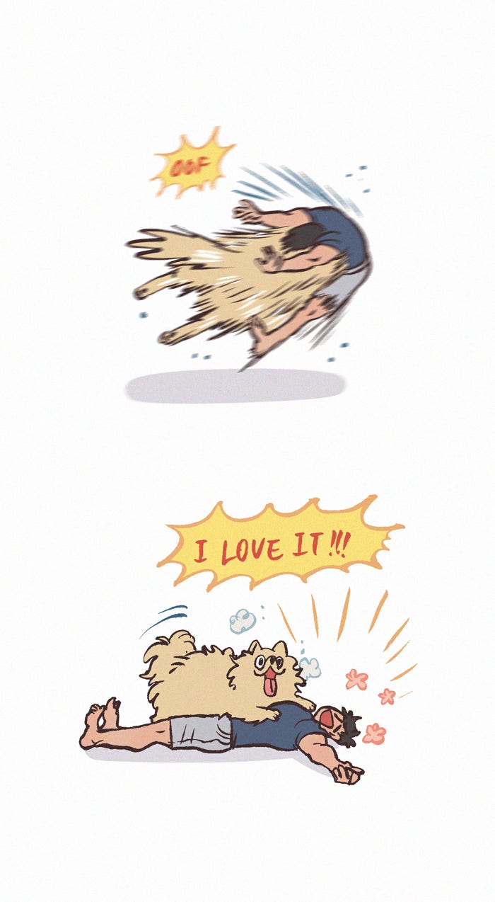 The Grown Dog Bullies Its Owner