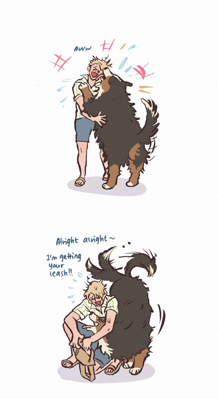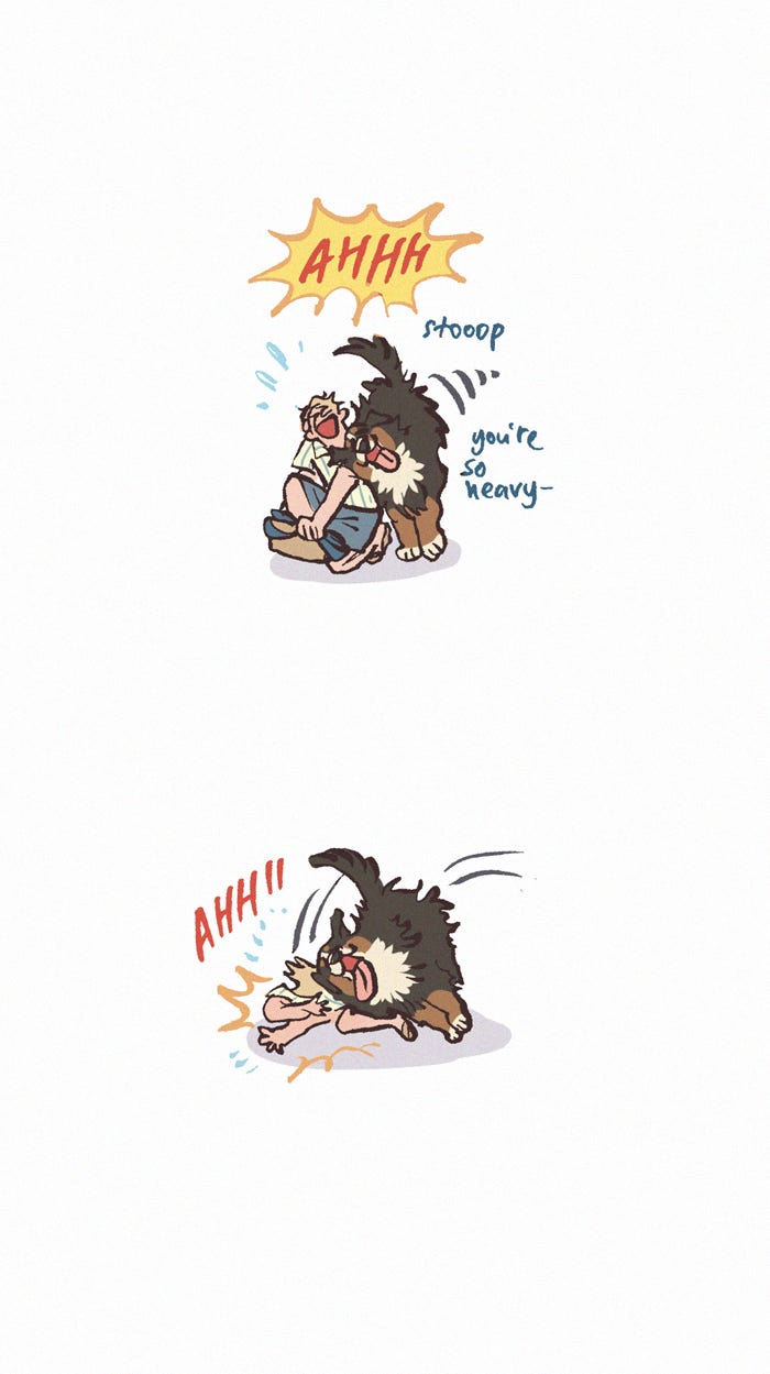 The Grown Dog Bullies Its Owner